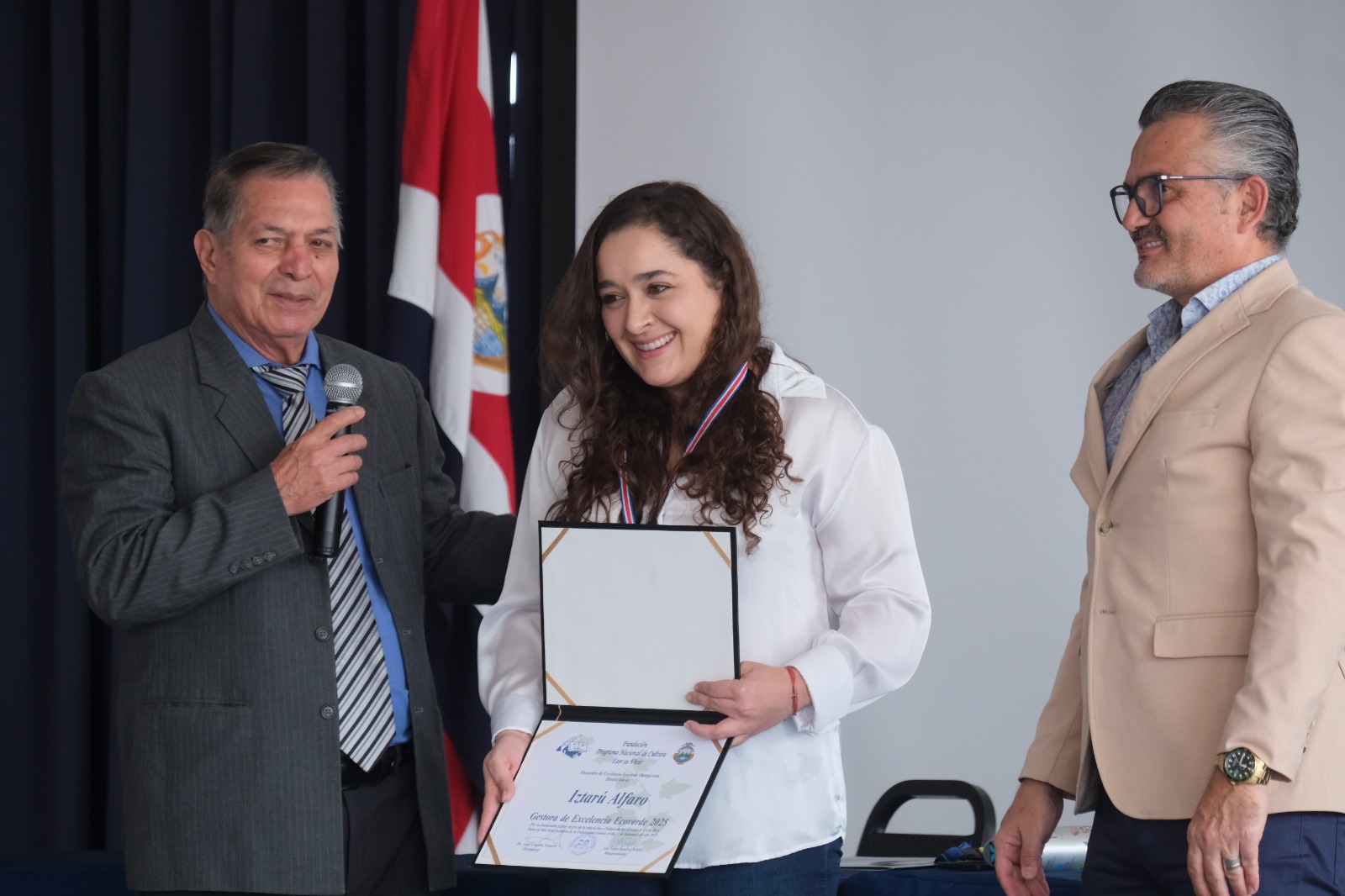 En el Auditorio Magno de la Universidad Central de Costa Rica, la regidora Iztarú Alfaro fue reconocida con la distinción de Gestora de la Excelencia Nacional Oro en Cultura Verde y Sostenible, en un acto encabezado por el rector de la universidad, Dr. Erick Palma, y el vicepresidente de la Fundación Programa Nacional de Cultura, Dr. Víctor Ramírez.